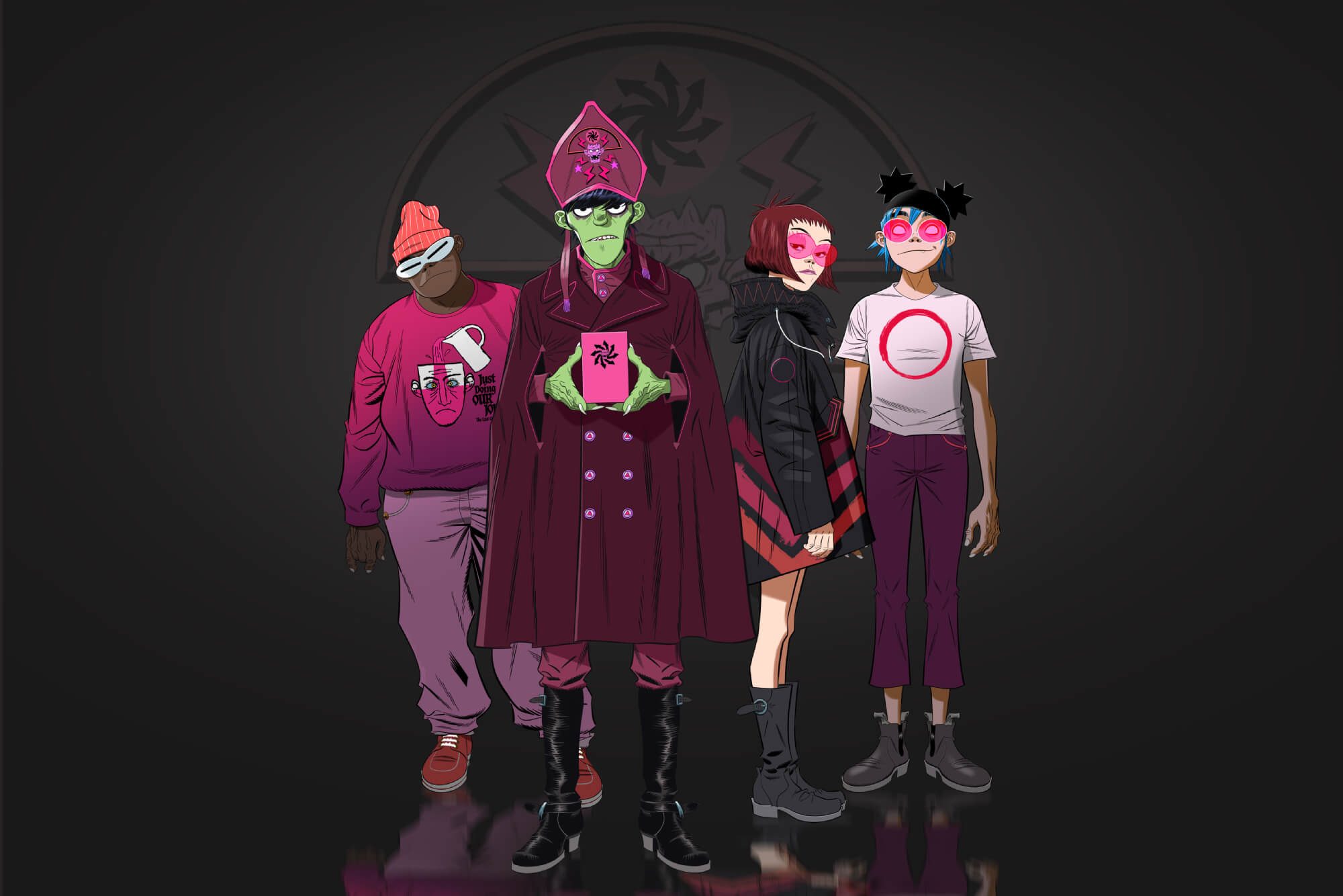 Muusikko Damon Albarnin ja taiteilija Jamie Hewlettin perustamaan Gorillaz-yhtyeeseen kuuluu laulaja 2D, basisti Murdoc Niccals, rumpali Russel Hobbs ja japanilainen kitaran ihmelapsi Noodle. BRIT- ja Grammy-palkittu virtuaaliyhtye muodostui sattumusten, tapaamisten ja silkkaa tuuria sisältävän yhteentörmäyksen seurauksena räjäyttääkseen esidigitaalisen maailman värikkäällä taustatarinallaan ja uraauurtavilla virtuaalisilla tavoillaan. Gorillazin yhteistyökumppaneiden lista on silmiä hivelevän jännittävä. Siihen kuuluu musiikin legendoja, neroja ja tulevaisuuden tähtiä Elton Johnista Little Simziin, MF DOOM:sta Jean-Michel Jarreen, Kali Uchisista Sidiki Diabatéen, sekä monia muita. Gorillaz on julkaissut uransa aikana seitsemän albumia, joista viimeisin Song Machine, Season One: Strange Timez julkaistiin vuonna 2020. Gorillaz on todellinen globaali ilmiö, joka on saavuttanut menestystä aivan uusilla ja ainutlaatuisilla tavoilla, kiertänyt maailmaa San Diegosta Syyriaan ja Montevideosta Manchesteriin sekä voittanut lukuisia palkintoja, kuten himoitun Jim Henson Creativity Honor -palkinnon.